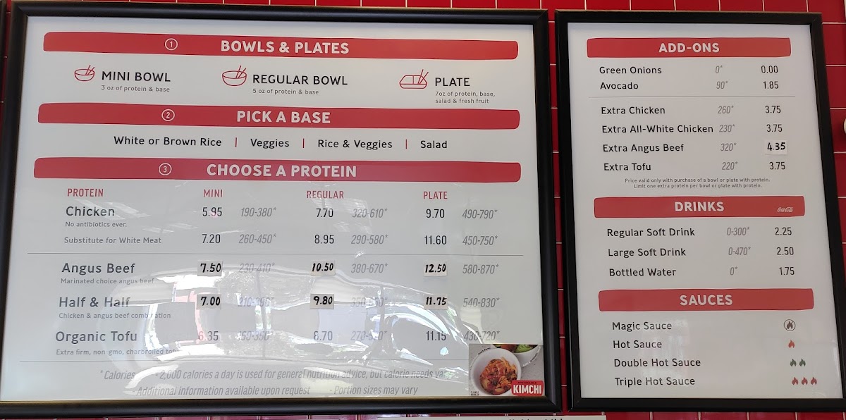 Mix & match your choice of two proteins, all charbroiled on a piping hot 550F grill. Angus Beef, marinaded bulgogi-style. NAE (No Antibiotics Ever) Chicken, brushed with our Simply Magic Sauce. Organic Tofu, brushed with our Simply Magic Sauce. Comes with your choice of white or brown rice, veggies or salad.